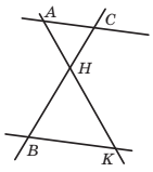 5. Прямі AK і BC перетинаються в точці H. При цьому BH=2,5CH, AH=0,4HK. Знайдіть периметр трикутника BHK, якщо периметр трикутника AHC дорівнює 8 см.