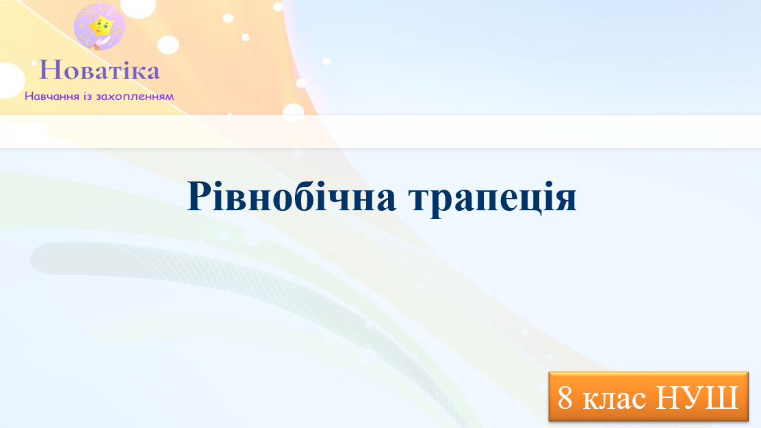 13 Експрес-контроль Рівнобічна трапеція 8 клас 1 / 8 Знайди периметр рівнобічної трапеції, три сторони якої мають довжину 8 см, а кут при основі — 120° Перевірити 2 / 8 Знайди периметр рівнобічної трапеції, бічна сторона якої дорівнює 14 см, менша основа — 8 см, а гострий кут — 60° Перевірити 3 / 8 У рівнобічній трапеції, менший кут якої дорівнює 30°, більший кут має дорівнювати 130° Так Ні 4 / 8 У рівнобічній трапеції, основи якої дорівнюють 3 см і 4 см, висота, проведена з вершини тупого кута, має ділити більшу основу на відрізки 0,5 см і 3,5 см завдовжки Так Ні 5 / 8 Рівнобічна трапеція може бути прямокутною Так Ні 6 / 8 У рівнобічній трапеції сума кутів при кожній основі становить 180° Так Ні 7 / 8 Бічні сторони рівнобічної трапеції рівні Так Ні 8 / 8 Трапеція — це чотирикутник, у якого протилежні сторони попарно паралельні Так Ні Your score is